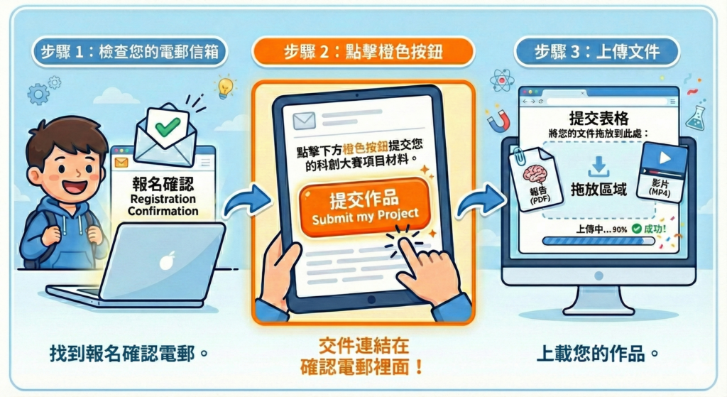 交件入口在哪裡?就在您的確認電郵裡!
